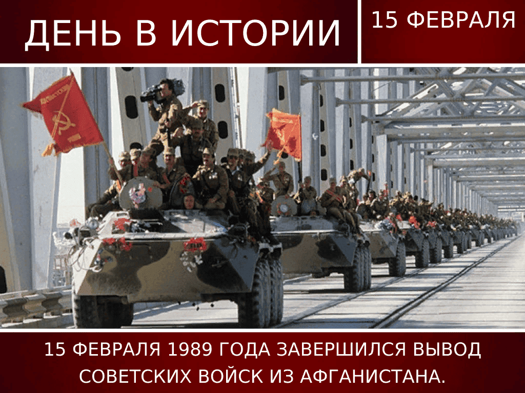 15 февраля – памятная дата России – день памяти о воинах, исполнявших служебный долг за пределами Отечества. Памятная дата отмечается с 2011 года.