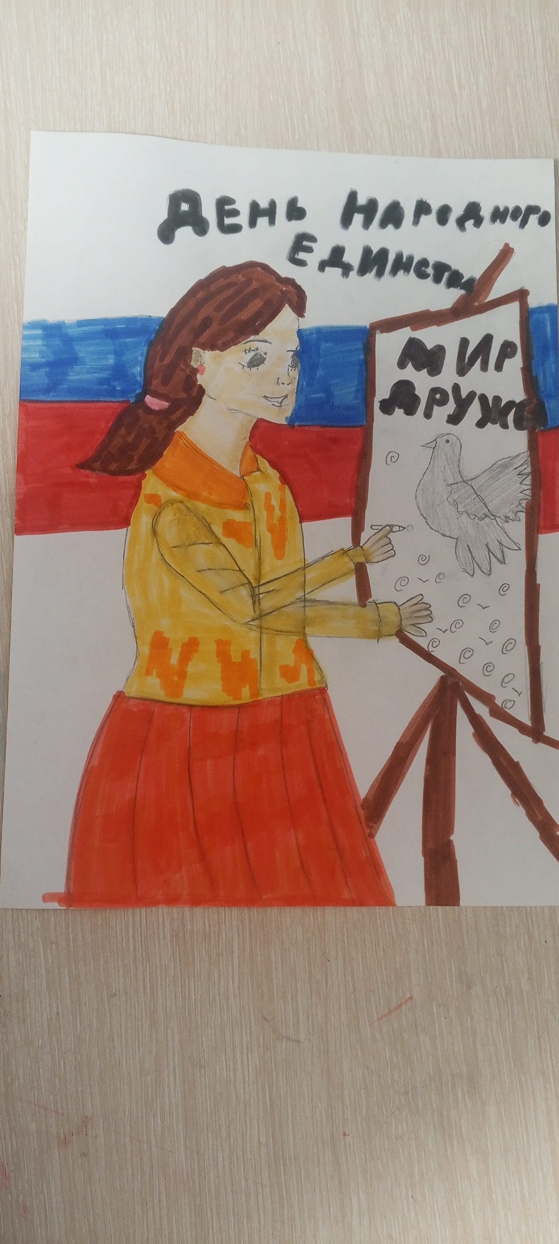 Девочка рисует картину «День народного единства»