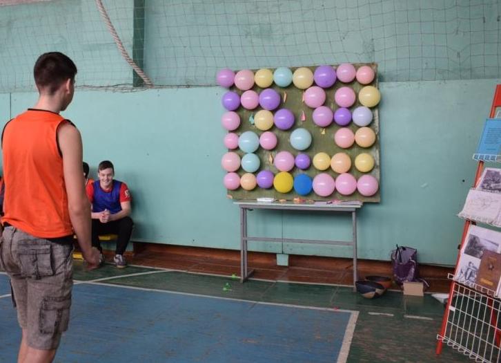 Участники каждой команды бросают дротики из игры «Дартс» по воздушным шарикам. Подсчитывается количество пораженных шариков.