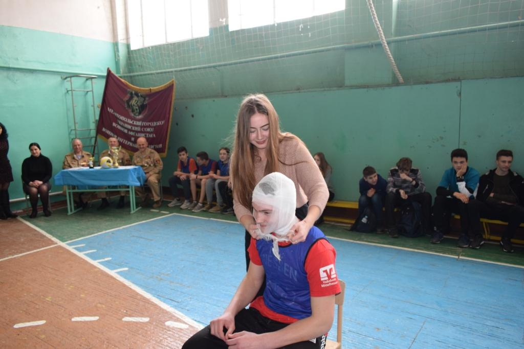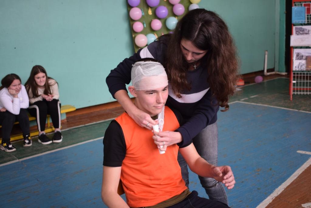 Оказать первичную медицинскую помощь, перебинтовать «раненого» бойца.