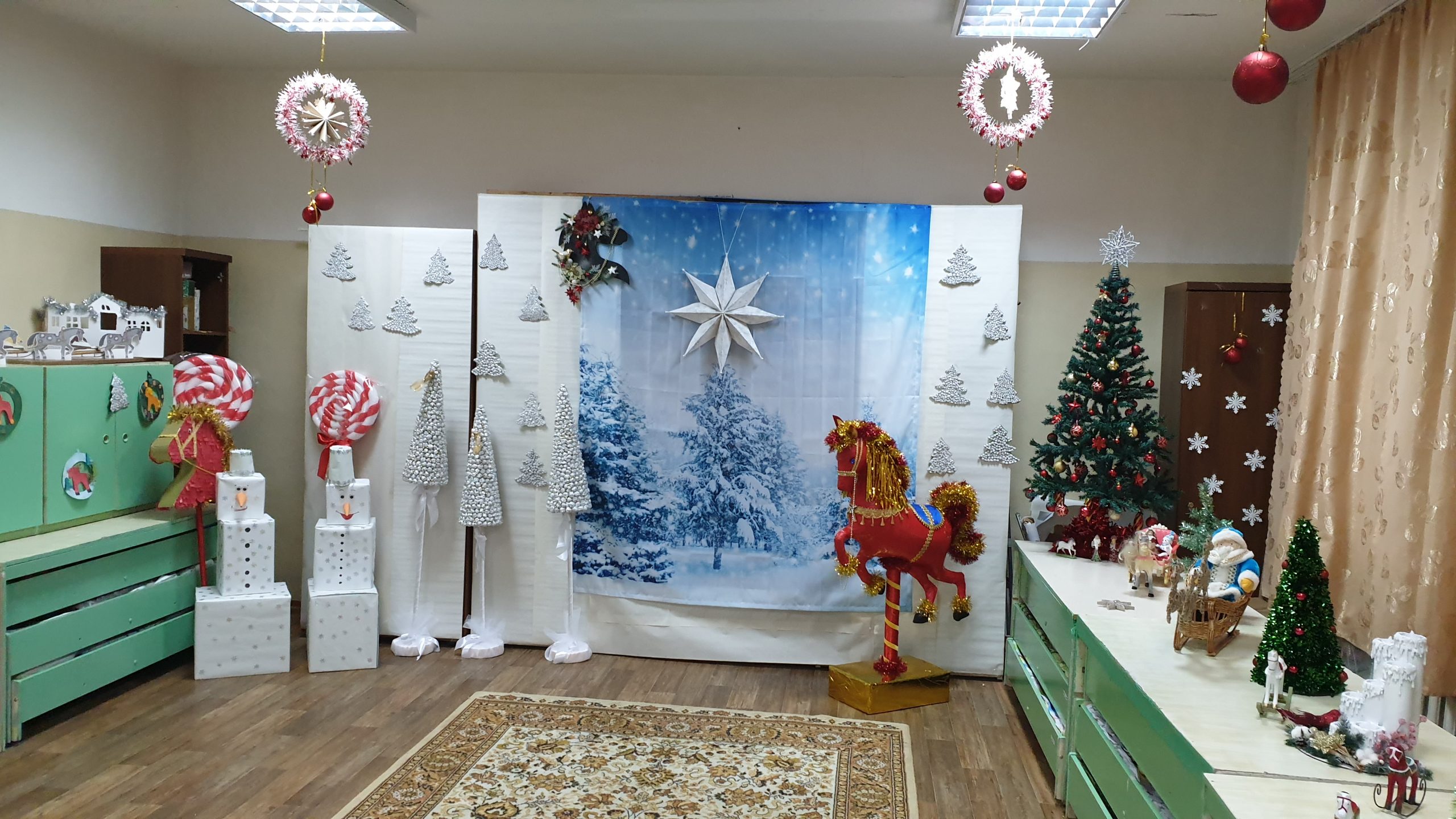 Оформление класса — «Новый год на конюшне у Снеговиков»