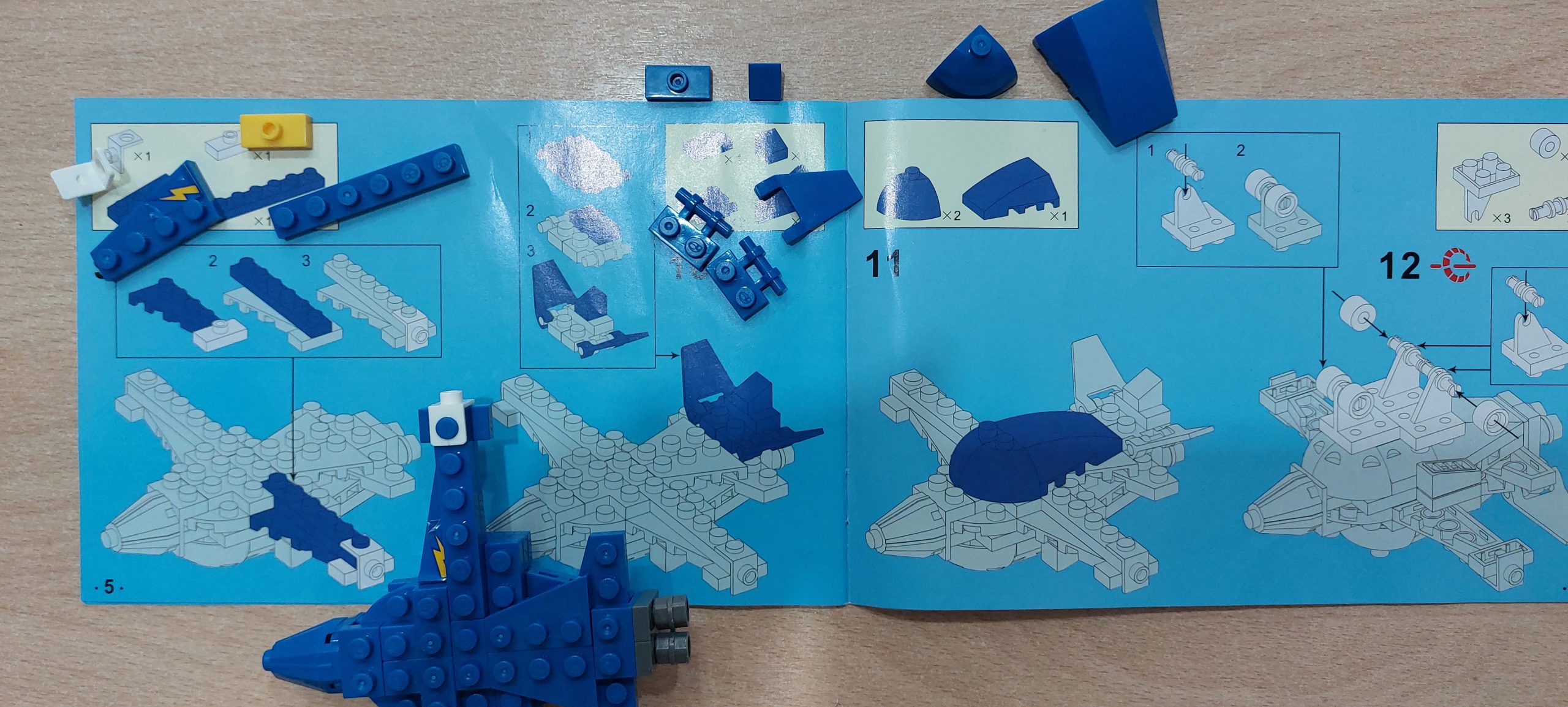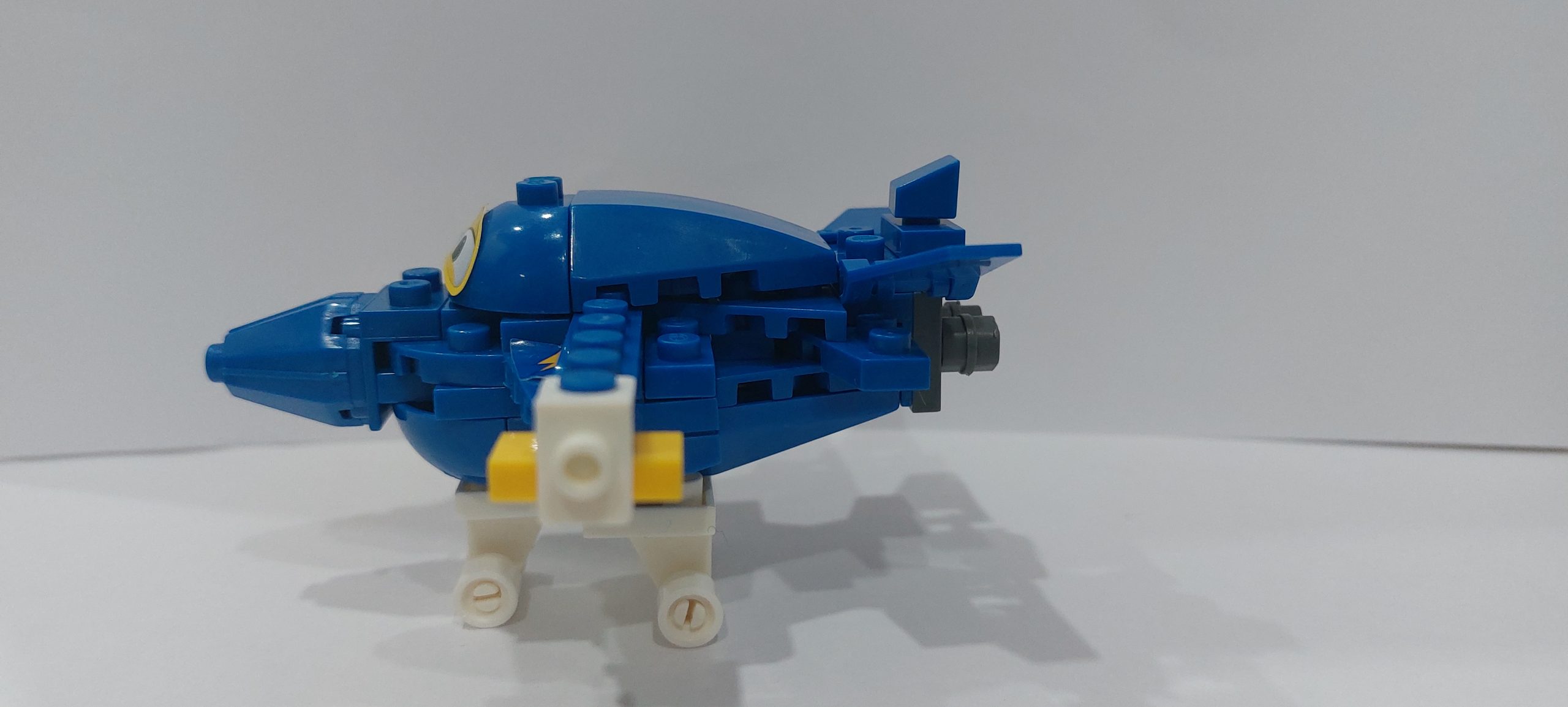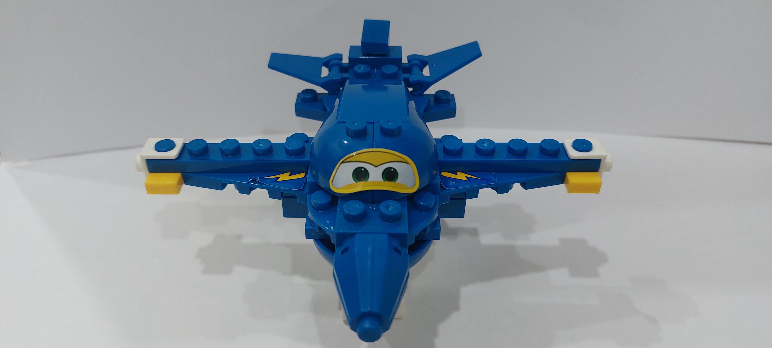 Собирать самолёт мы начали с нижней части самолёта, затем верхняя половина, носовая часть, крылья и на последнем этапе – шасси. Преимуществом данной модели являются двигающиеся детали – колёса и маленькие крылья. В наборе также были наклейки (глаза, знак молнии), которые украсили самолёт и сделали его настоящим мультяшным героем.